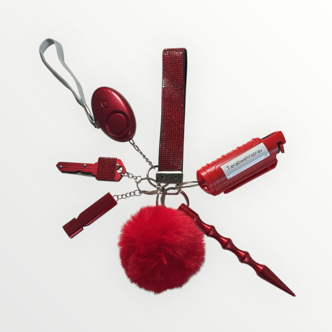 Spray inklusive Sprayhülle und Schlüsselbundring.
